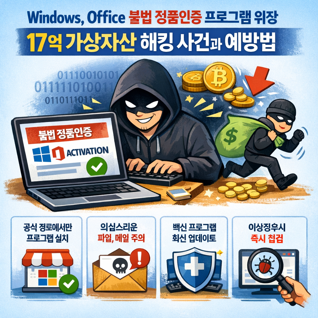 무료로 정품인증을 해준다는 크랙 프로그램을 설치하는 순간, 함께 설치된 악성코드가 가상자산을 노립니다.